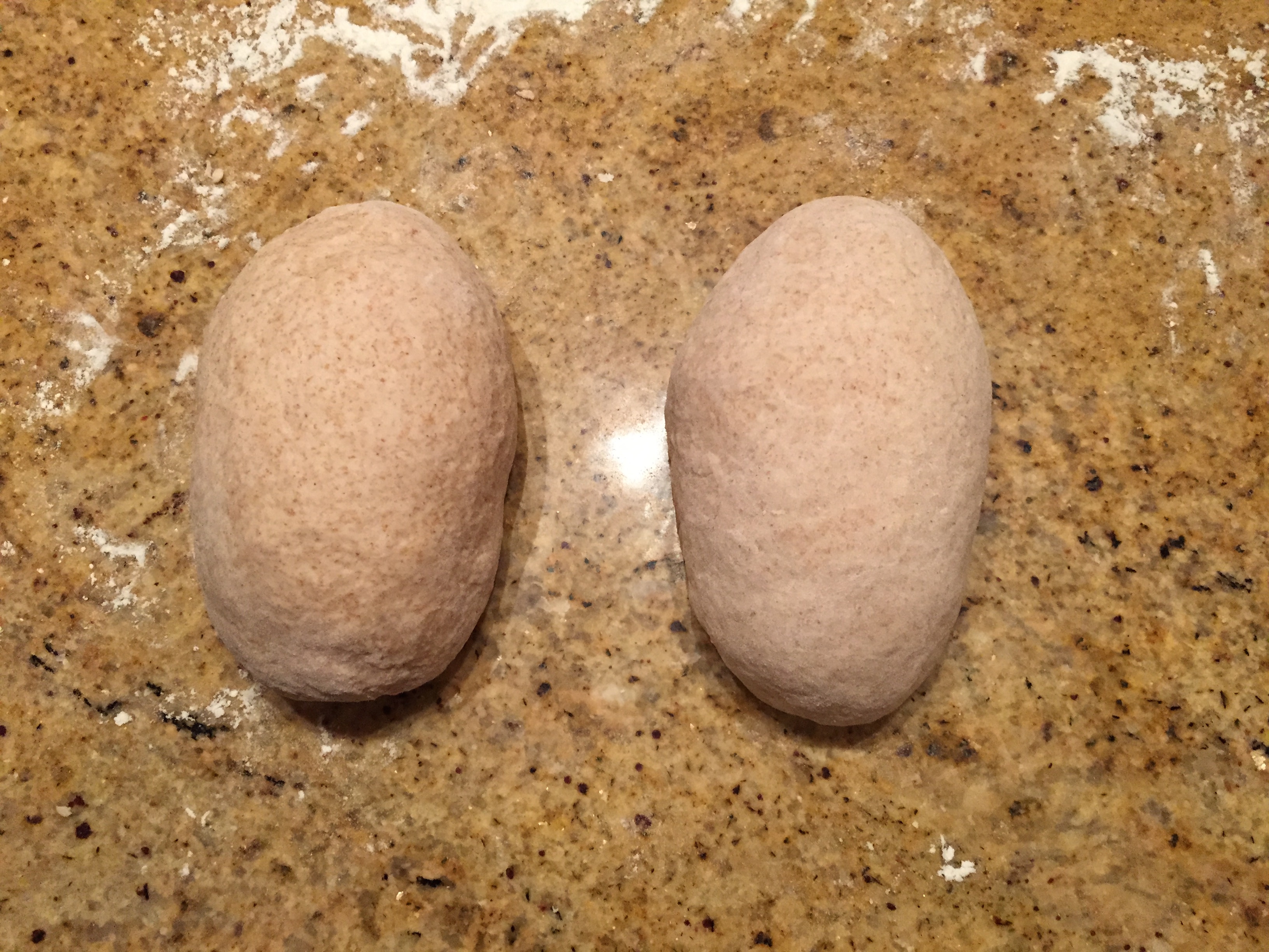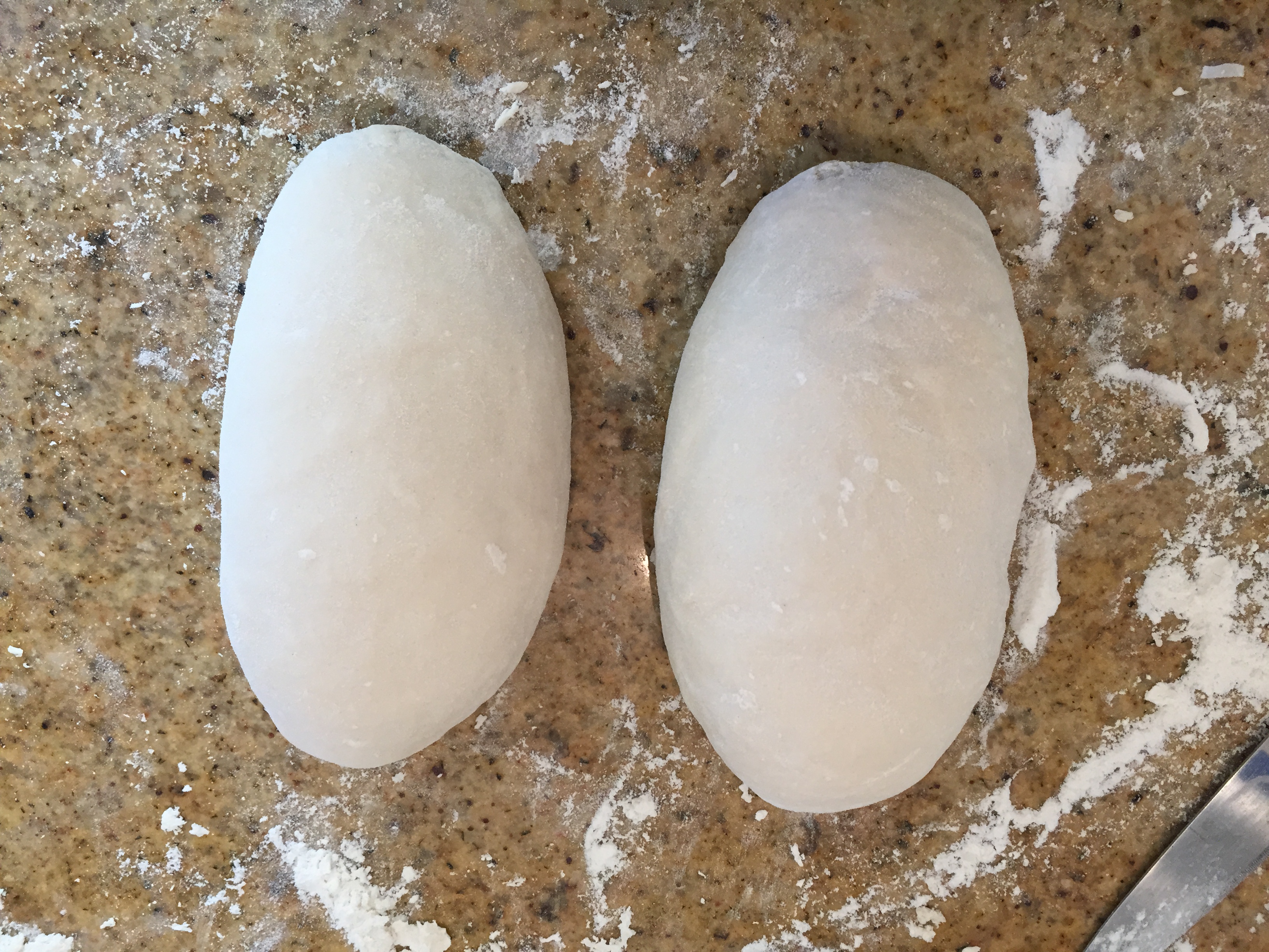 Step 5: Cut the dough into 2 sections and knead a few more times, then shape into loaves.