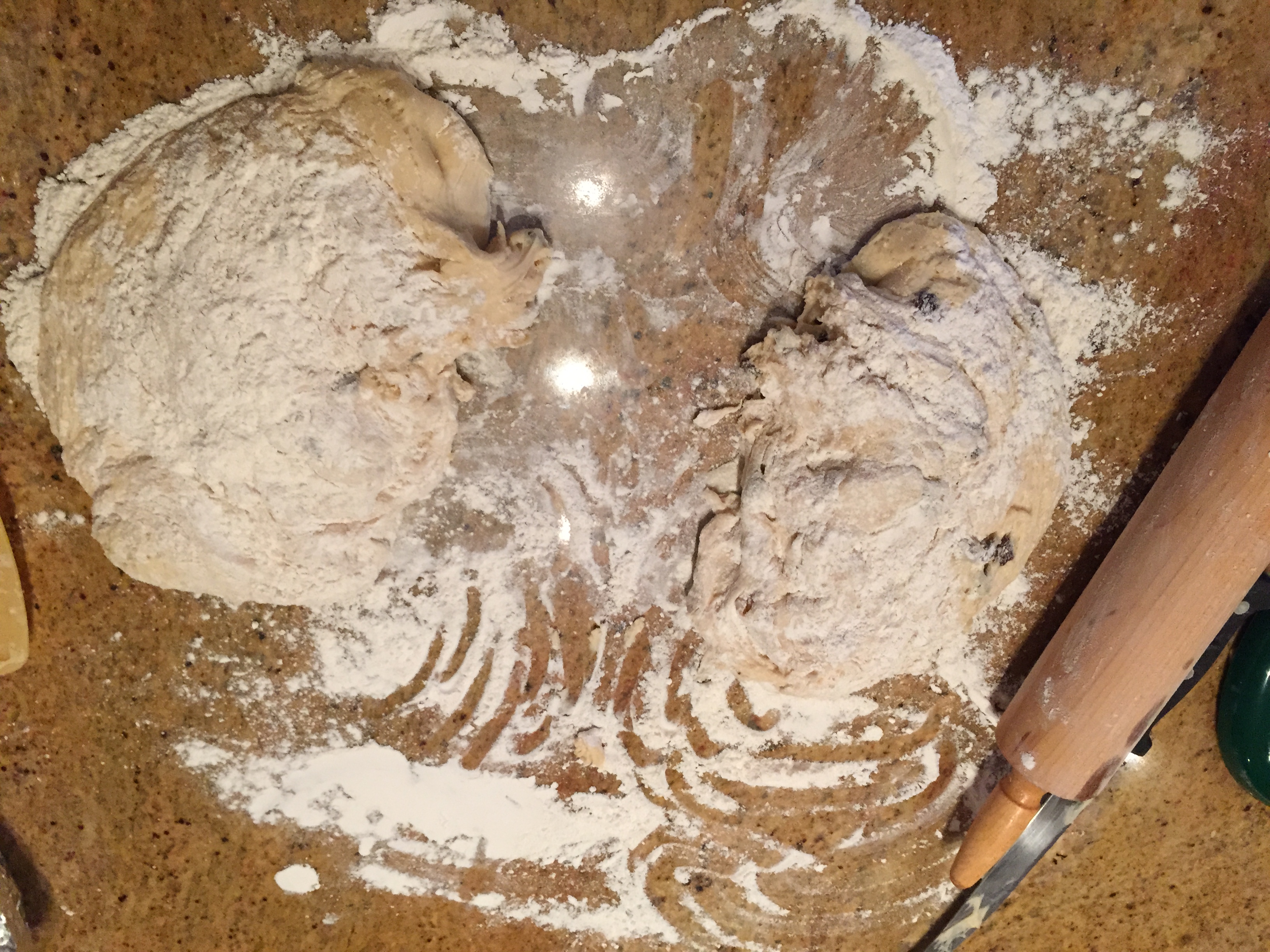This dough, when removed for kneading will be more sticky and silky than the other two. Knead the dough using the same method as above and place into a greased bowl for the first rising.